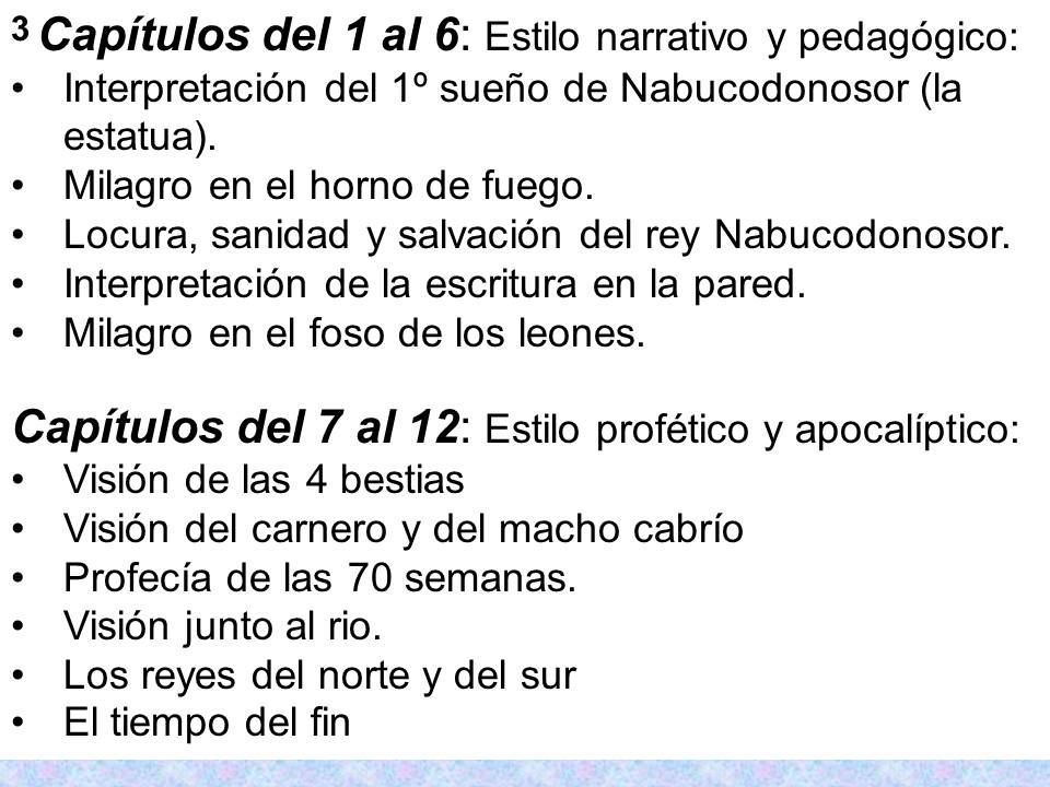 Carácter profético del libro de Daniel (así como Apocalipsis es al N.T., Daniel lo es al A.T.).